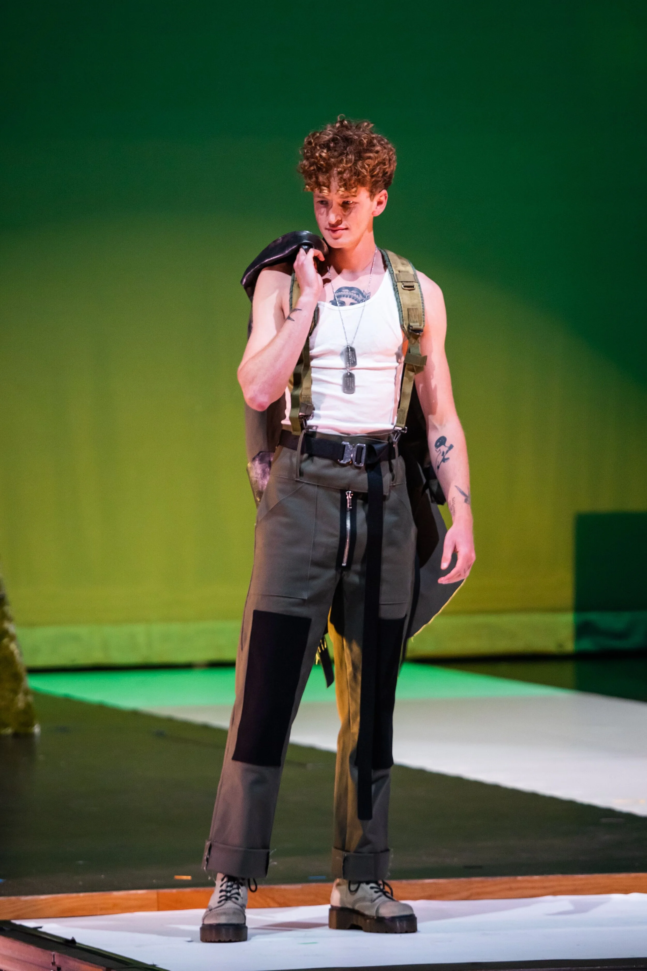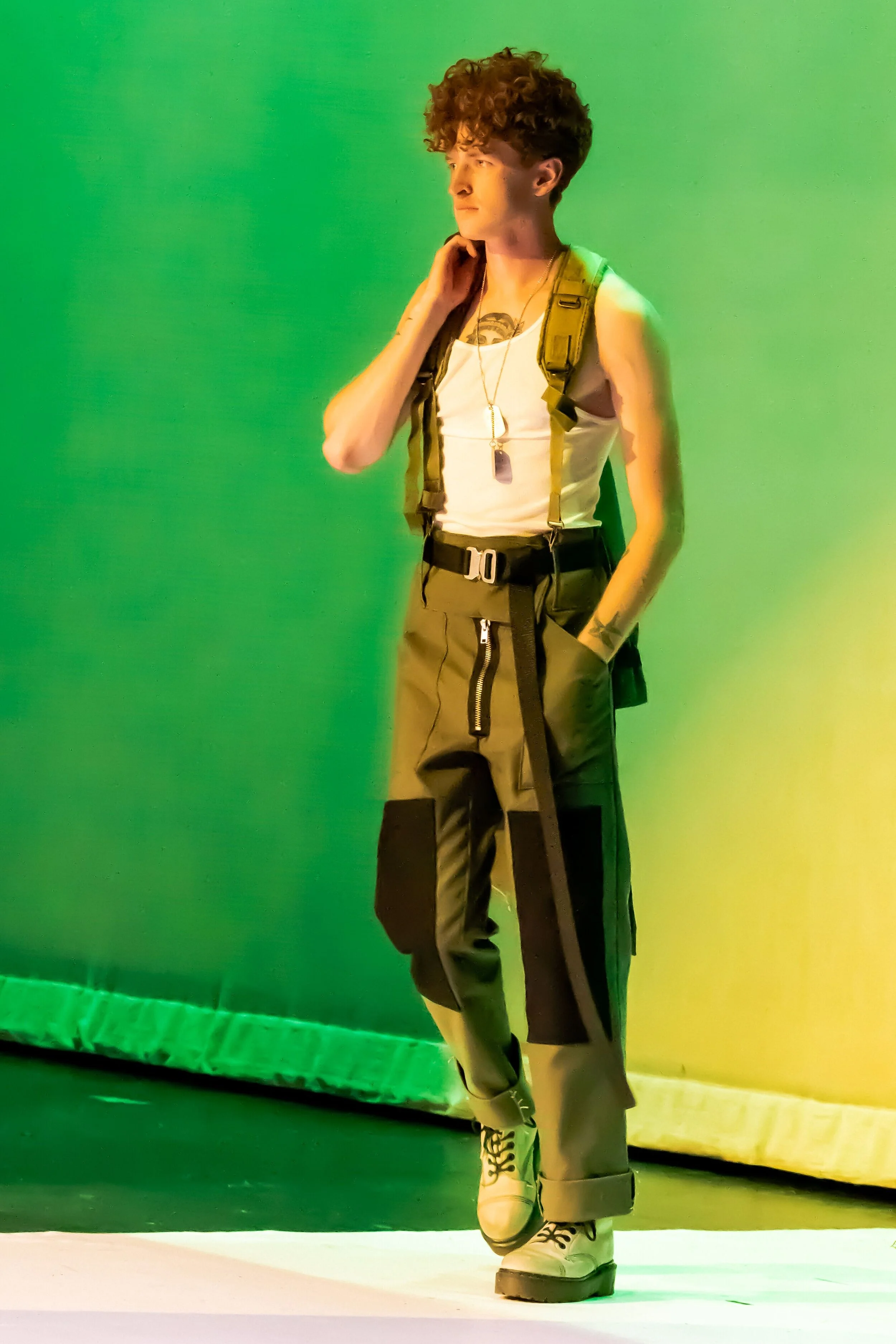 Reimagining the military issue tactical vest and cargo pants.